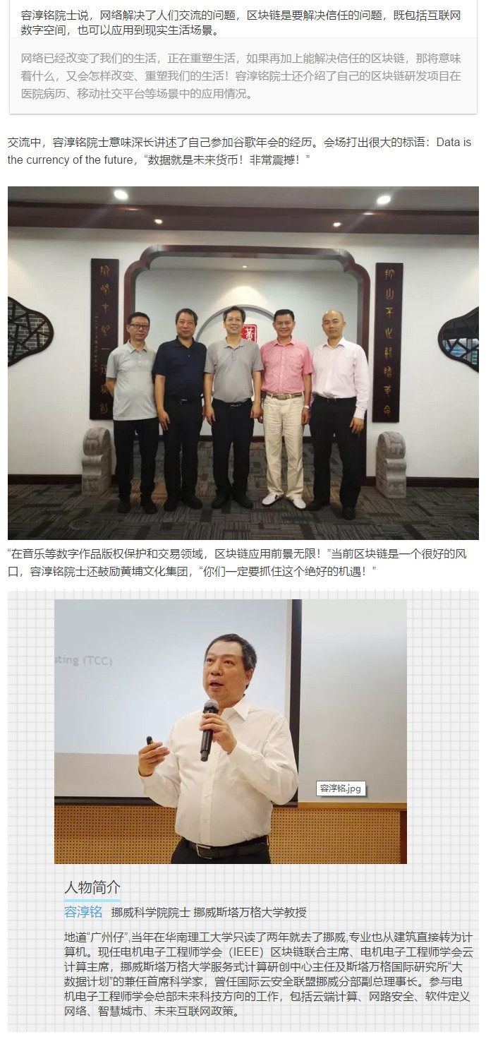 容淳銘院士來訪:文化上“鏈”大有可為!黃埔文化春天,迎來區(qū)塊鏈云!